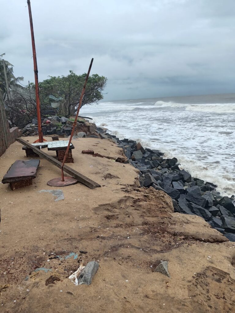 കടലേറ്റം ഇപ്പോഴും തുടരുന്നതിനാൽ തീരം ഇടിഞ്ഞുവീണു കൊണ്ടിരിക്കുന്നു. നിലവിലുണ്ടായിരുന്ന കടൽ ഭിത്തികളൊക്കെ ഇവിടെ കടലെടുക്കുന്ന കാഴ്ചയാണ് കാണാൻ സാധിക്കുന്നത്. വർഷങ്ങളോളം പിടിച്ചുനിന്ന വലിയ കരിങ്കല്ലുകൾ കൊണ്ട് തീർത്ത കടൽ ഭിത്തികളാണ് ഈ വർഷം രൂക്ഷമായ കടലാക്രമണത്തിൽ തകർന്നടിഞ്ഞത്.ഇത് തീരത്ത് വലിയ അപായ സൂചന നൽകുന്നുമുണ്ട്.