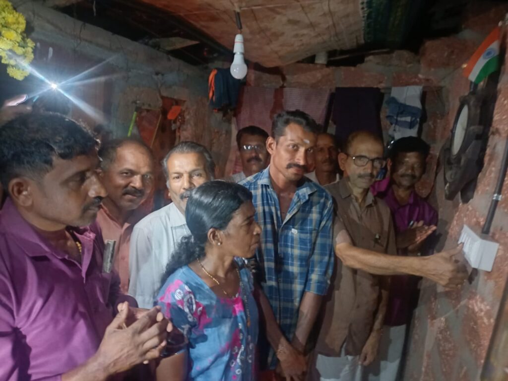 വിദ്യാഗിരി-കാടർ ബാപ്പുമൂല്ല ഉന്നതിയിലെ പട്ടിക ജാതി വിഭാഗത്തില്പ്പെട്ട രാജേഷ്- സുശീല ദമ്പതികൾുടെ കുടുംബമാണ് വൈദ്യുതിയെത്താതെ ഇരുട്ടില് കഴിയുകയായിരുന്നു. കുടുംബത്തിന്റെ ദയനിയവസ്ഥ മനസ്സിലാക്കിയ വാര്ഡിലെ കോണ്ഗ്രസ് പ്രവര്ത്തകര് മുന്നിട്ടിറങ്ങി വയറിംഗ് നടപടികള് പൂര്ത്തീകരിച്ച് വെളിച്ചമെത്തിച്ച് മാതൃക പ്രവര്ത്തനം നടത്തി.