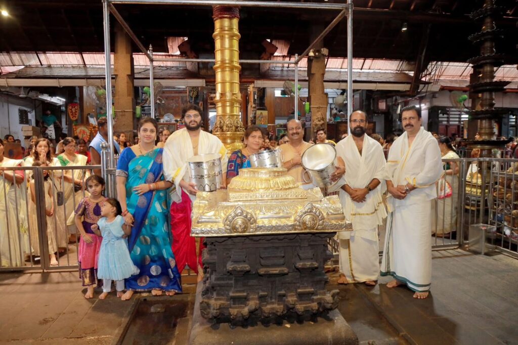 തൃശ്ശൂർ :സ്വാതന്ത്ര്യ ദിനമായ ഇന്ന് ശ്രീഗുരുവായൂരപ്പന് വഴിപാടായി മൂന്ന് വെള്ളികുട്ടകങ്ങളുടെ സമർപ്പണം. വിജയവാഡ സ്വദേശിയായ ശ്യാം സുന്ദർ ശർമ്മ, മകൻ നീലി കൃഷ്ണ യശ്വന്ത് എന്നിവർ കുടുംബസമേതം എത്തിയാണ് സമർപ്പണം നടത്തിയത്. ക്ഷേത്രം ഡെപ്യൂട്ടി അഡ്മിനിസ്ട്രേറ്റർ പ്രമോദ് കളരിക്കൽ വെള്ളി കുട്ടകങ്ങൾ ഏറ്റുവാങ്ങി. 3കിലോ നാന്നൂറ് ഗ്രാം തൂക്കം വരുന്ന ഒന്നും മൂന്ന് കിലോ 450 ഗ്രാം തൂക്കം വരുന്ന രണ്ട് കുട്ടകങ്ങളും ഉണ്ടായിരുന്നു. കുട്ടകങ്ങൾക്ക് മൊത്തം പത്ത്കിലോ 300 ഗ്രാം തൂക്കം വരും. ശർക്കര, നേന്ത്രപ്പഴം, ഇളനീർ എന്നിവ കൊണ്ട് കുടുംബാംഗങ്ങൾക്ക് തുലാഭരം നടത്തിയ ശേഷമാണ് വഴിപാടുകാർ മടങ്ങിയത്. ക്ഷേത്രം ഡി.എ പ്രമോദ് കളരിക്കൽ വഴിപാടുകാരനായ ശ്യാം സുന്ദർ ശർമ്മയ്ക്കും കുടുംബത്തിനും ശ്രീ ഗുരുവായൂരപ്പൻ്റെ കളഭവും പഴവും പഞ്ചസാരയുമടങ്ങുന്ന പ്രസാദങ്ങൾ നൽകി.
